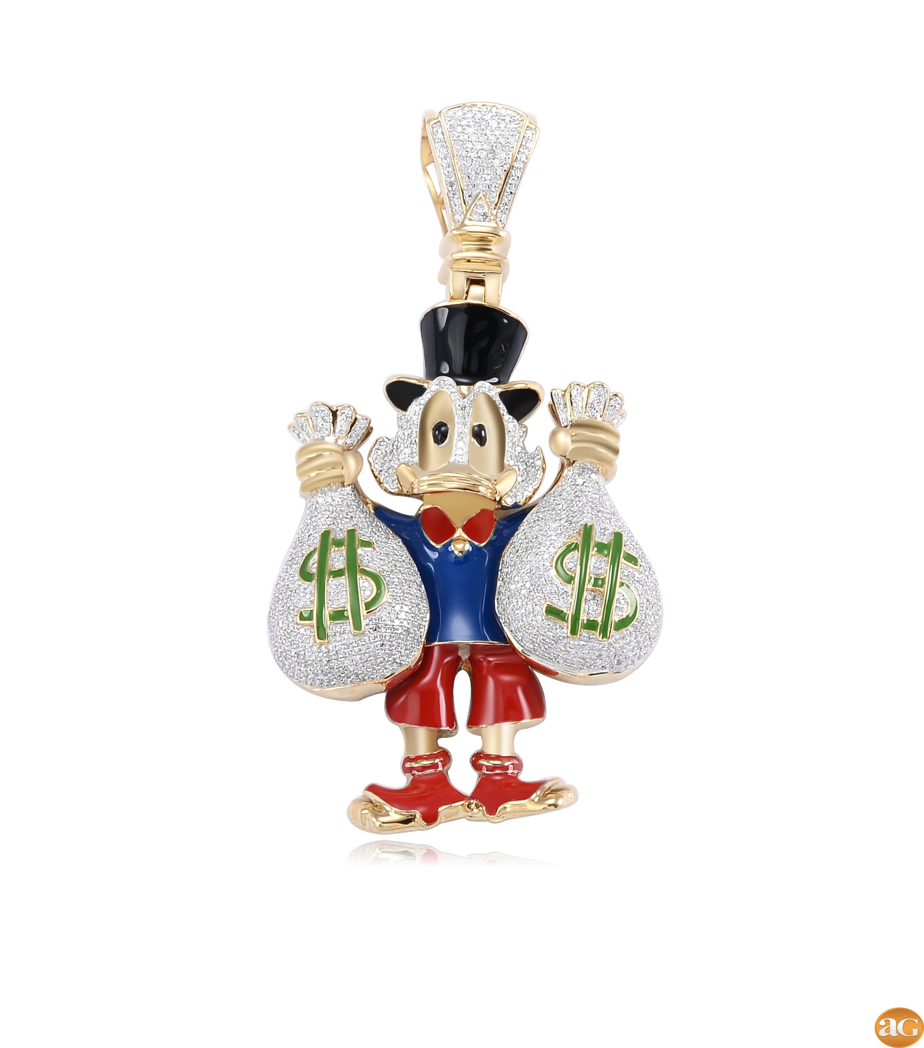 10KY 3.75CTW DIAMOND DUCK WITH MONEY BAGS PENDANT