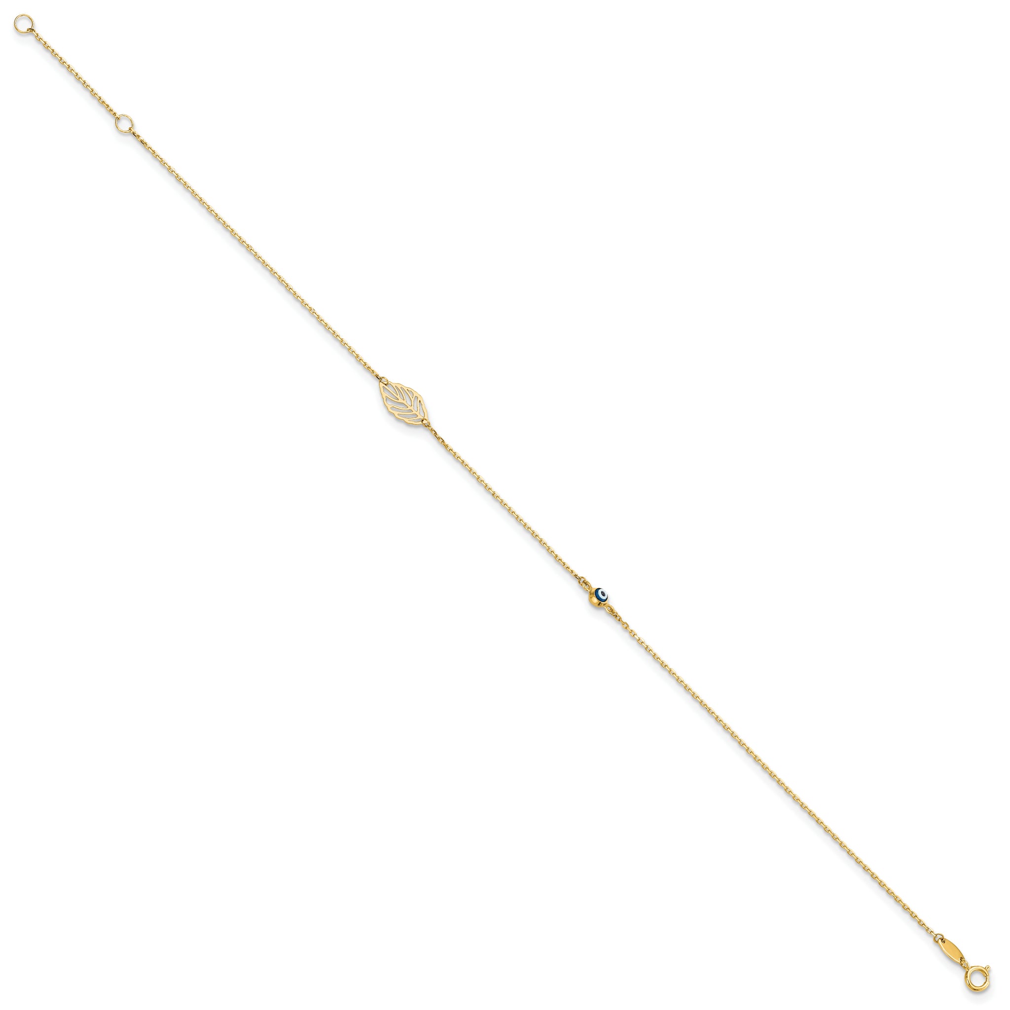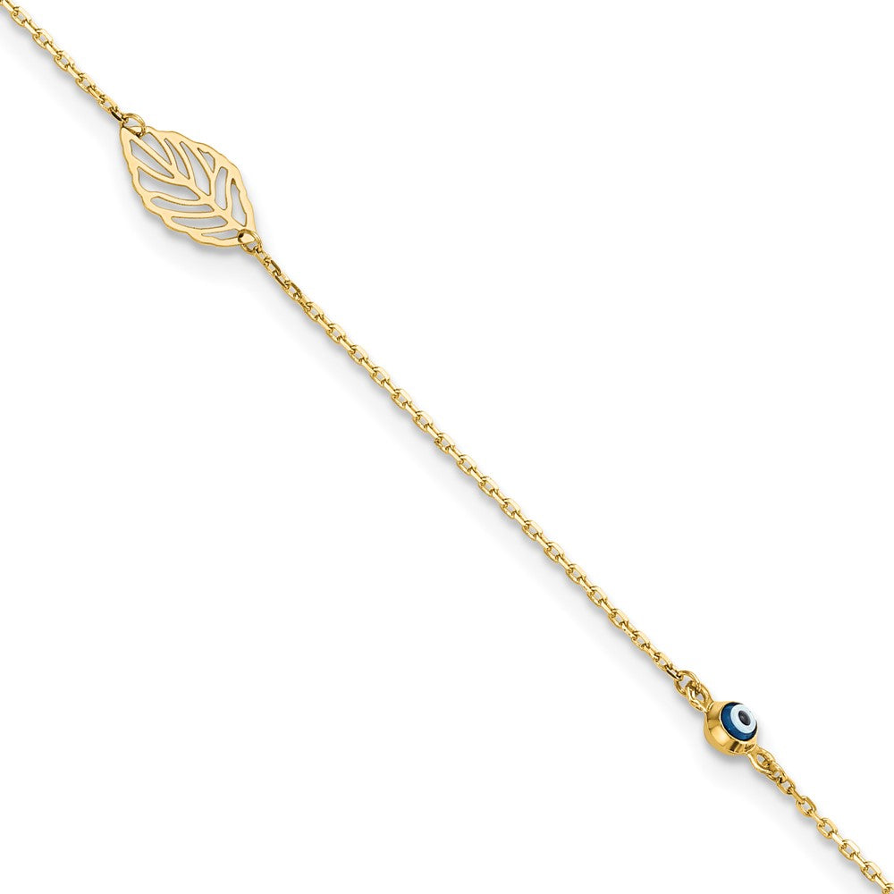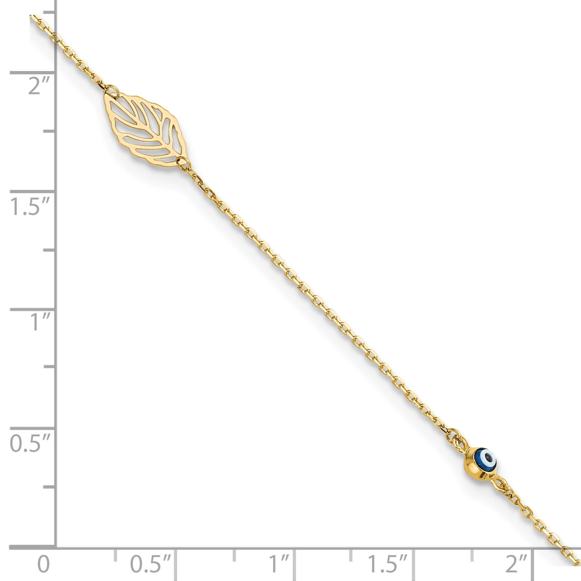 14k Leaf and Glass Eye Bead 9in Plus 1in Ext Anklet