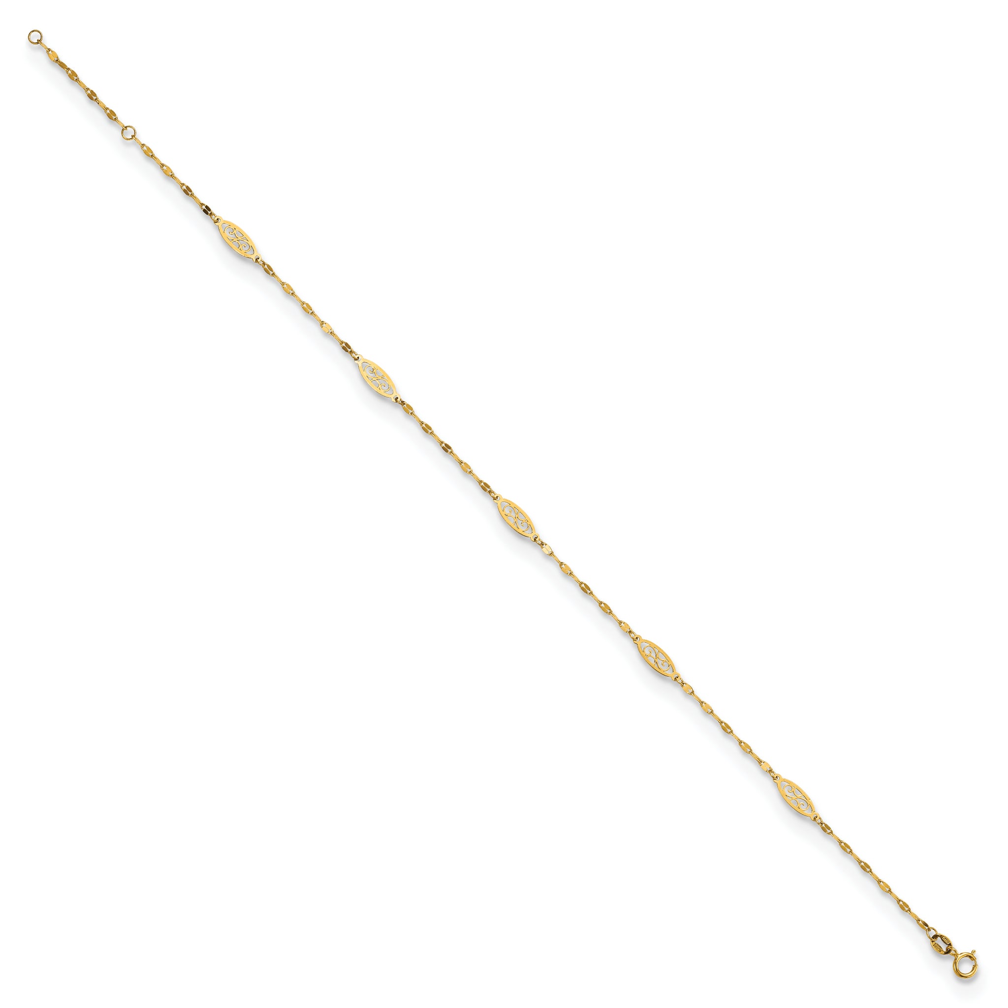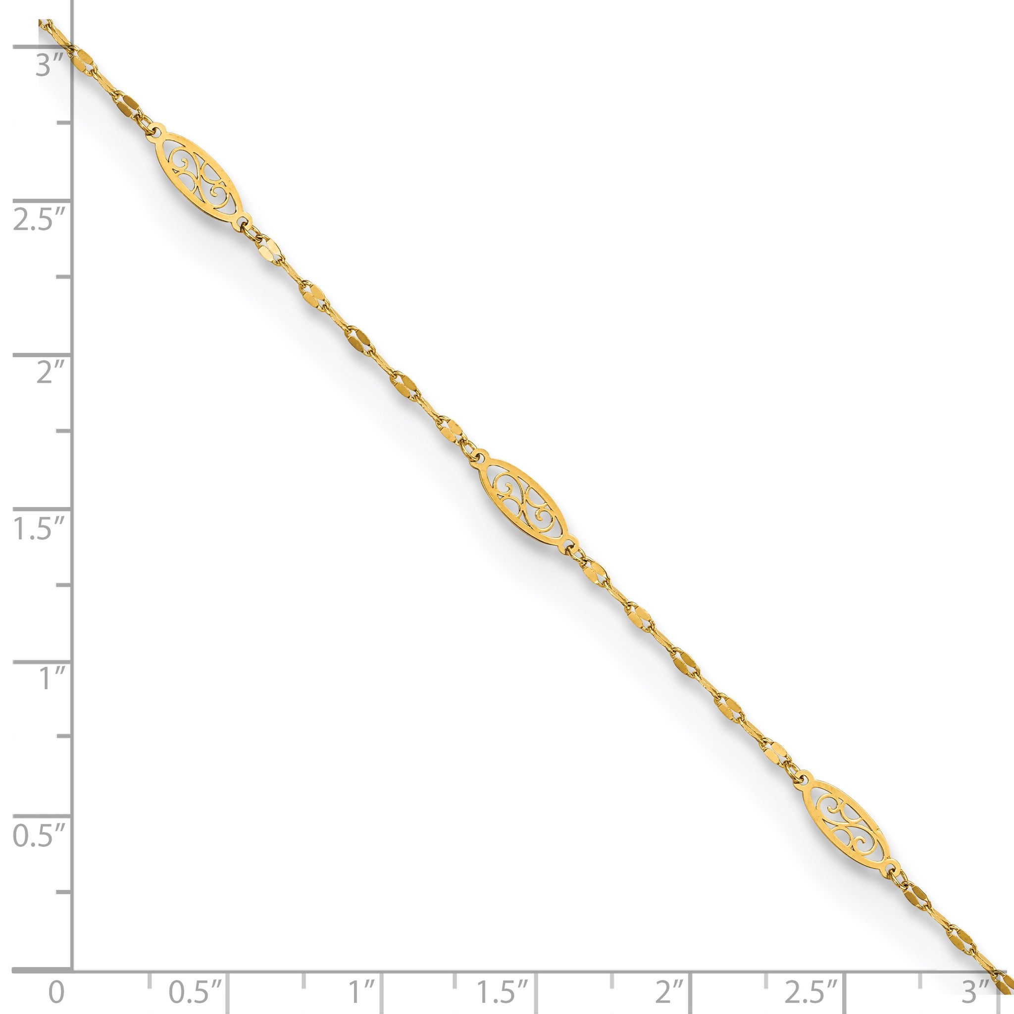 14K Polished Fancy Filigree Link 9in Plus 1 in ext. Anklet