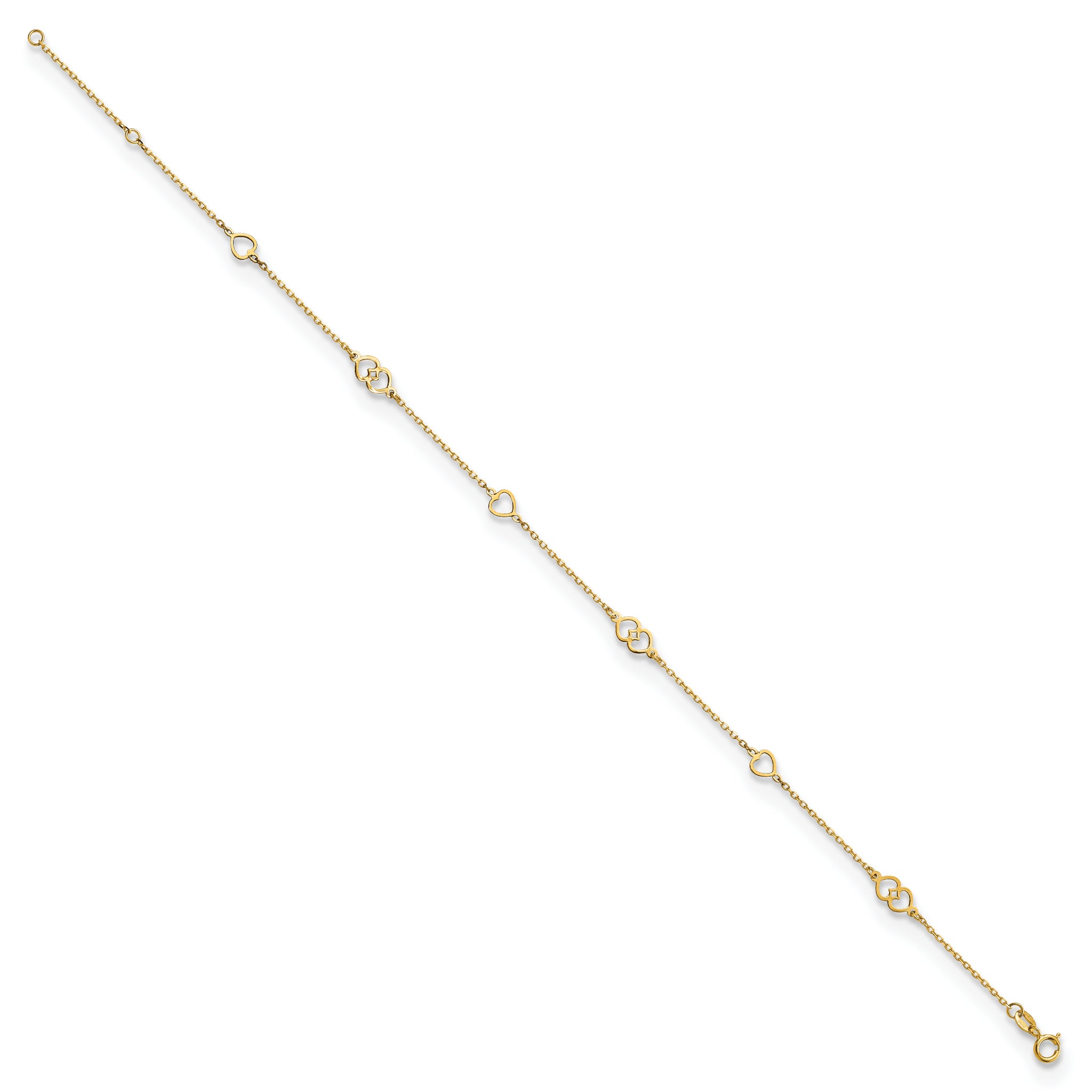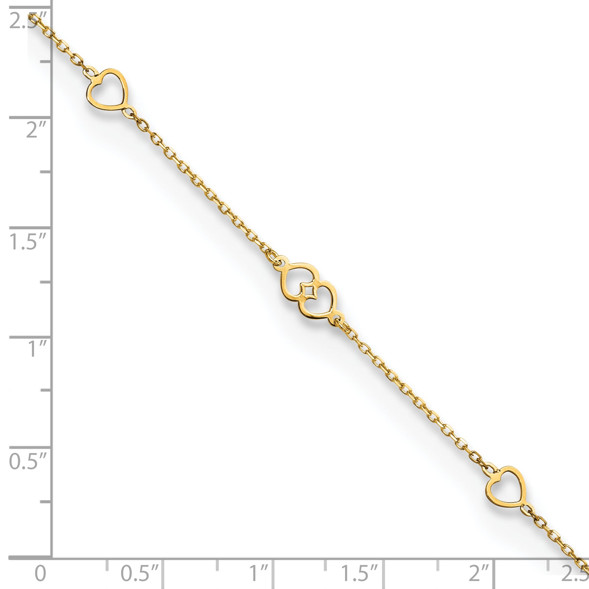 14K Polished Hearts 9in Plus 1 in ext. Anklet