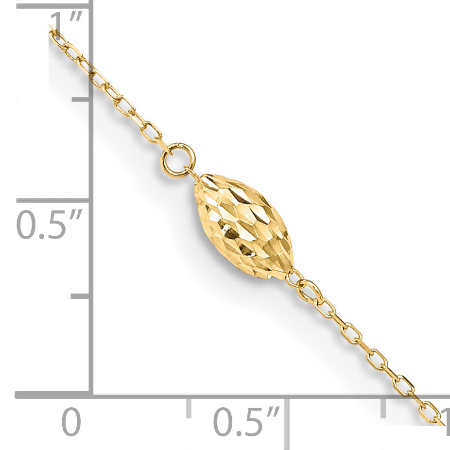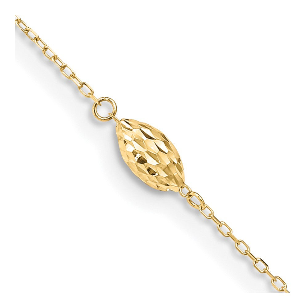14k Polished Puffed Rice Bead 9in Plus 1in ext. Anklet