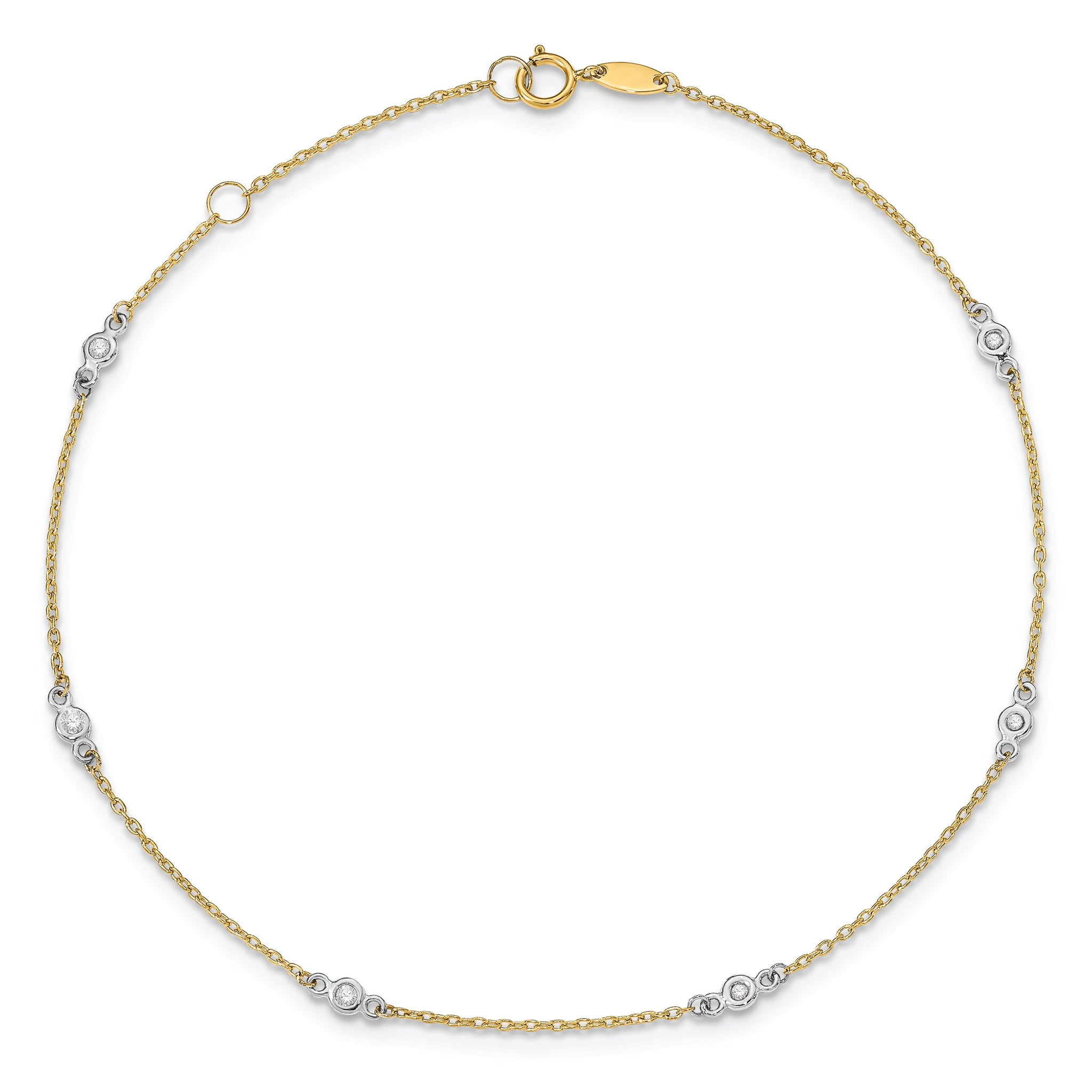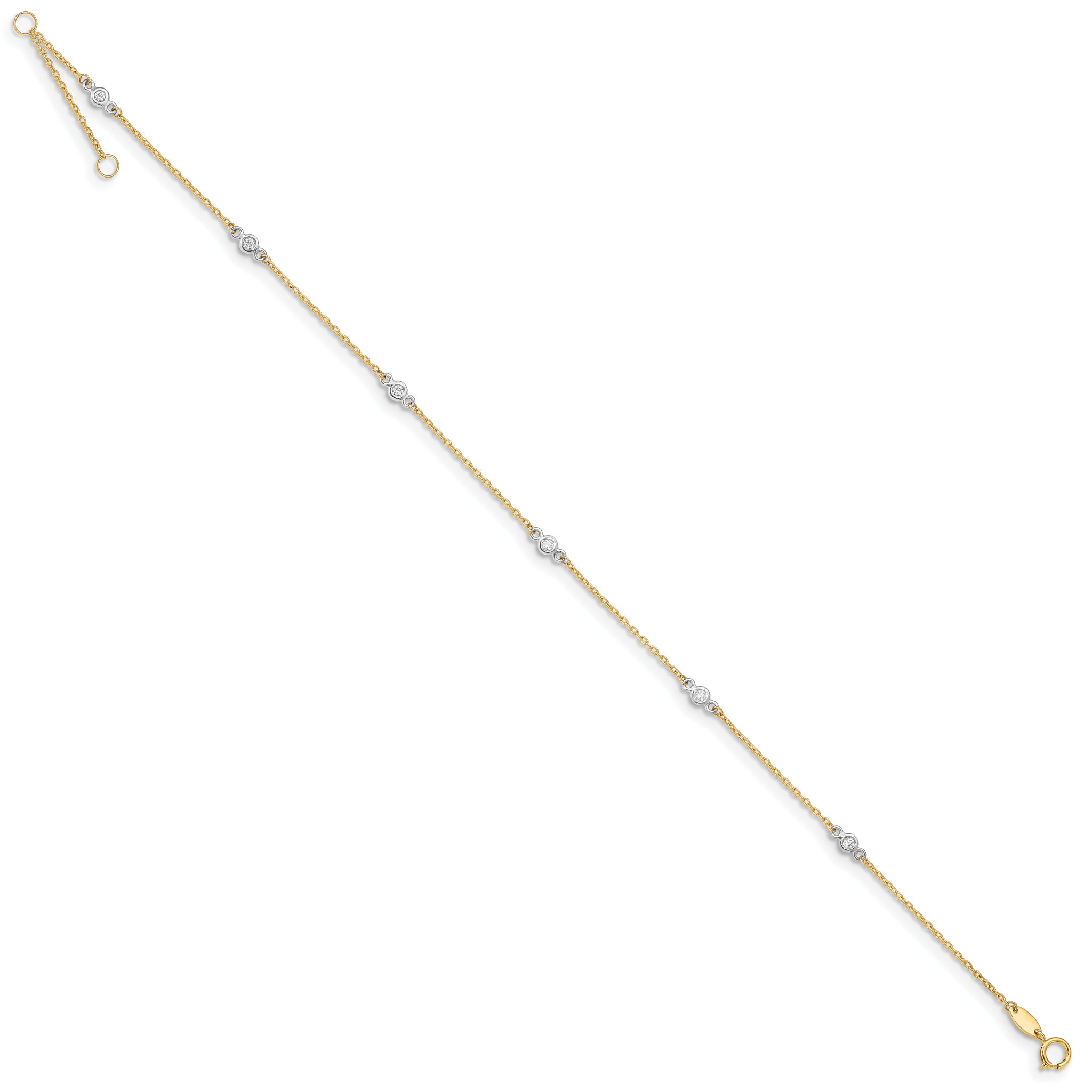 14k Two-tone CZ 9in Plus 1in ext. Anklet