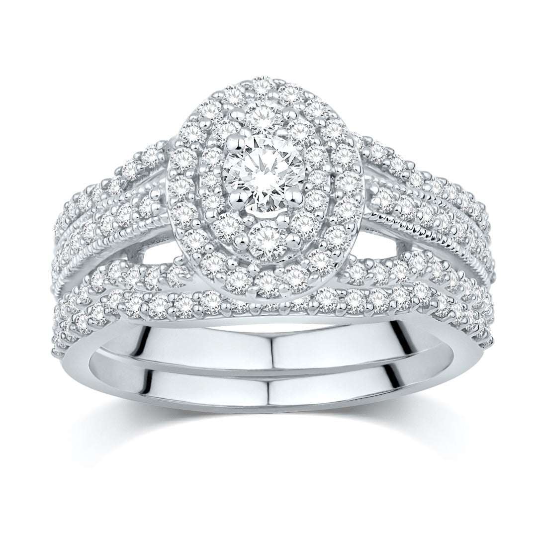 14K White Gold 1.00 Carat Oval Uno Bridal Ring-0532729-WG