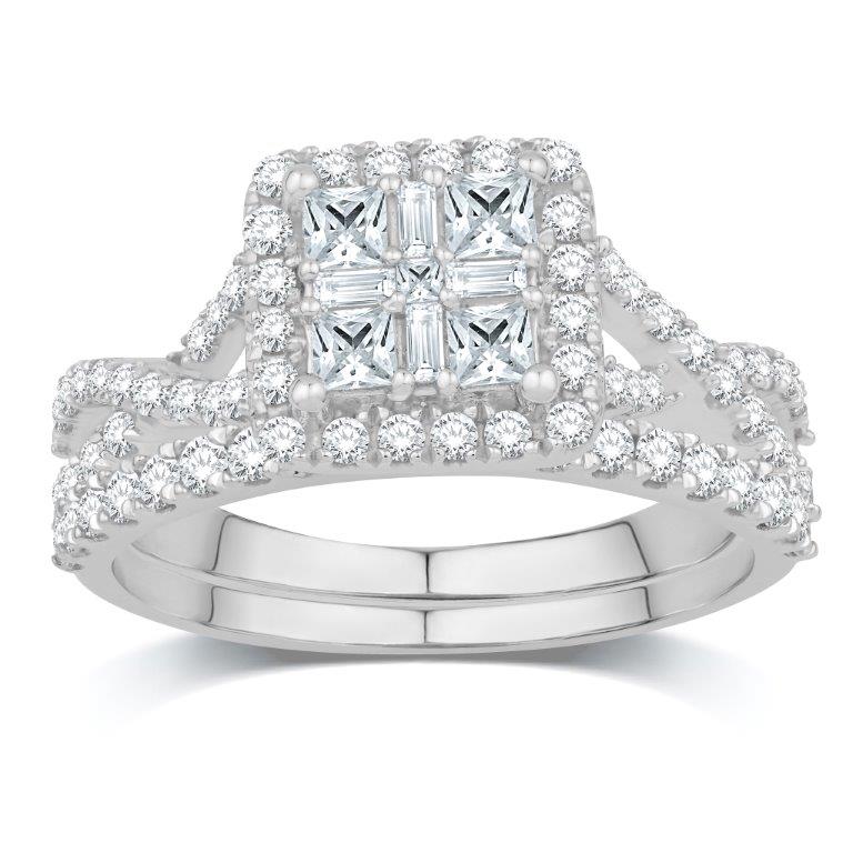 14K White Gold 1.00 Carat Square Bridal Ring-0532784-WG